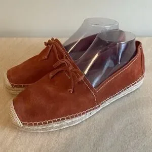 Coach Rae Espadrille Shoe Size 10 Terracotta Slip On Flats Gold Logo Bow