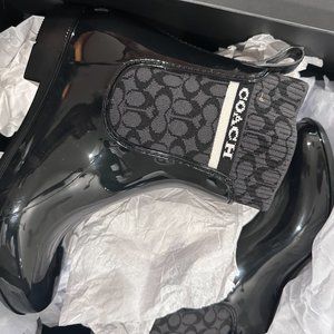 Black patent look with elastic sock sides. I love them, but my foot is too wide & I didn’t return them in time.