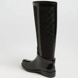 Coach Rainboots Lux Black Knee High Boots Waterproof Rubber Size 7