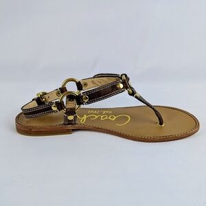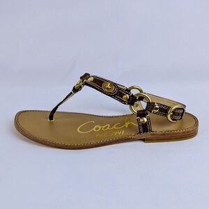 Coach Raiven Sandal Leather Flat Thong Ankle Strap Goldtone Tobacco 8.5 NWOB