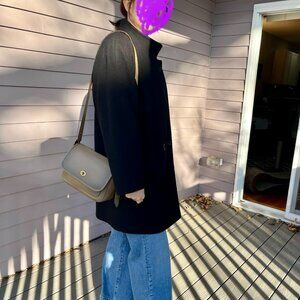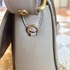 Coach Rambler leather shoulder/crossbody bag in Dark Stone. Limited Edition, 2019. Structured, classic silhouette with an adjustable strap so you can wear it as a shoulder bag or crossbody.