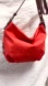 Orange red signature logo nylon canvas with dark brown leather trim.