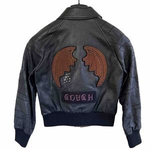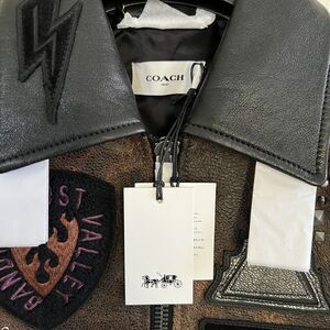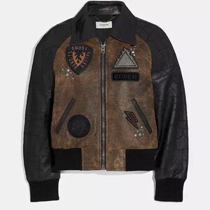 Coach Rare Women’s Embellished Varsity Leather Jacket Patchwork Sleeves Size 0