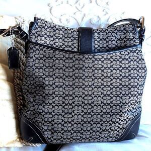 Coach ♣️Rare Limited Edition Vintage Signature Black Canvas Leather Trim Hobo