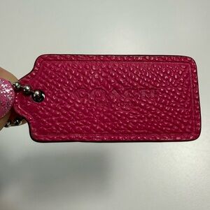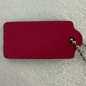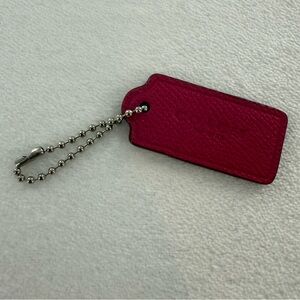 Coach raspberry red bag tag used in good condition with an indention on the brown trim(see photos). First photo is close to the color of the tag. Please ask any questions before purchasing or making an offer. No dust bag or box included.