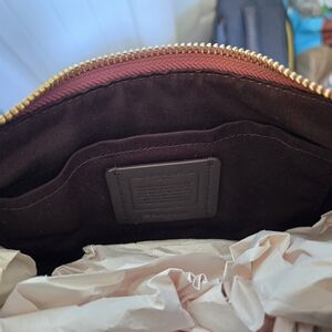 This elegant Coach shoulder bag showcases a vibrant raspberry color, crafted from high-quality pebbled leather for a textured finish. The gold-tone hardware enhances its sophisticated look, making it a stylish choice for any occasion. Its compact design ensures it fits comfortably on the shoulder, perfect for daily use.