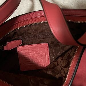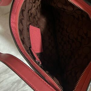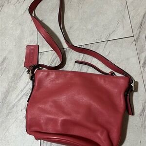 Stylish Raspberry pink/red crossbody bag by Coach. Features a sleek design and adjustable strap. 🩷🌺