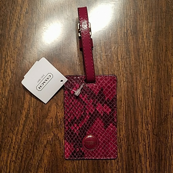 Coach Raspberry Snakeskin Luggage Tag