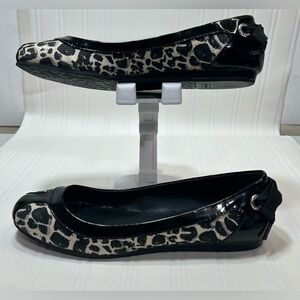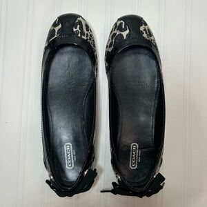 Coach Reagan Flats Loafers Shoes Womens Size 8B Black Cream Cheetah Print Patent leather trim. Slip On. Cute bow on heel.