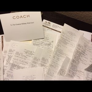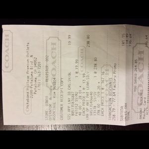 @kaygriffin here are some of my Coach receipts to prove that any Coach item I sell is authentic. I believe the single receipt is for the item you purchased, but I could be wrong because I don't know the abbreviated codes/names for all the purses I've purchased. Enjoy! 😊