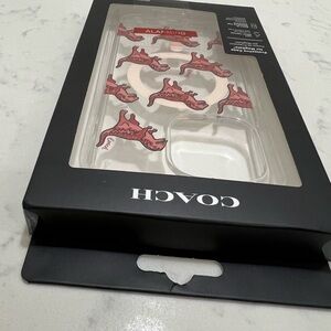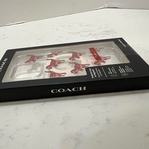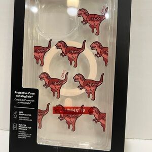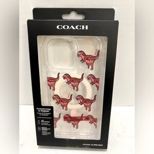 Add a whimsical touch to your phone with this Coach case, featuring a playful red dinosaur design on a clear background. This stylish accessory not only enhances your device's look but also provides reliable protection.