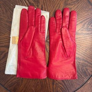 Brand new Coach red leather gloves, made in Italy. Never worn — still secured together with the original factory thread. Soft, high-quality Italian leather with a smooth finish and a classic longer silhouette. Includes original Coach tissue paper. A rare vintage Coach accessory in true new condition.
