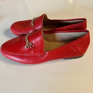 Coach Red Leather Chain Loafers Size 6.5 | Horsebit Style Slip-On Flats