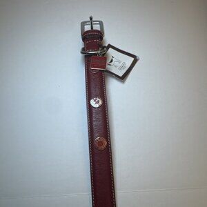 This Coach Red Leather Dog Collar Grommets Charm F26177 in size small is a luxurious and stylish accessory for your furry friend. Made of high-quality leather, this adjustable collar features grommets and red Coach charm. New in box.