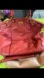 Elegant red leather shoulder bag. Features gold hardware. Classic Coach design.