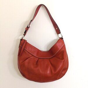 Coach Red Orange Vintage Pleated Leather Hobo Bag F13731