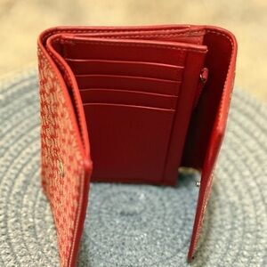 Stylish and compact, this Coach wallet features a striking red pattern. Perfect for organizing your essentials with elegance.