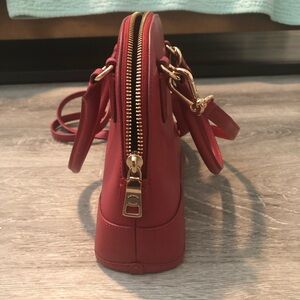 Coach Red Pebble Leather Handbag / Shoulder Bag with Detachable Shoulder Strap