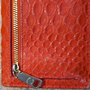Stunning red python embossed wallet. Features Coach logo detail. Elegant and stylish design.