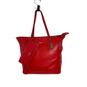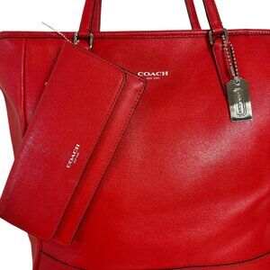 Coach Red Shoulder Tote Bag Top Zip Large Saffiano Leather + Red Wallet Set 23821