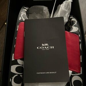 Coach Red and Black Sandals with Bold Design