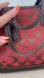 Coach Stylish red and brown clutch perfect for any occasion. Features a unique pattern that adds a touch of elegance to your outfit.