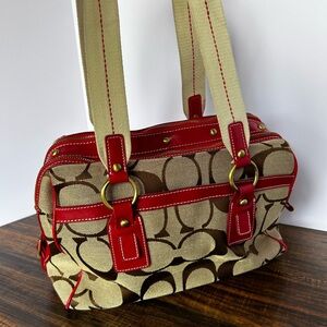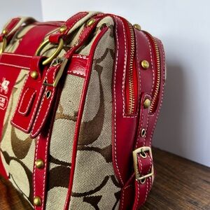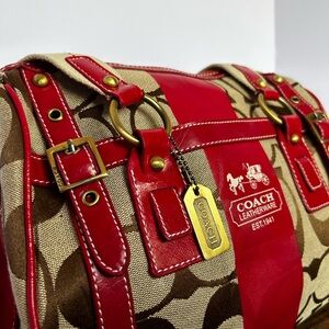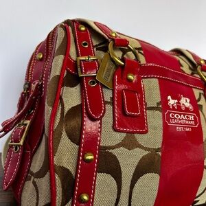 Coach Red and Brown Satchel Bag with Signature Design
