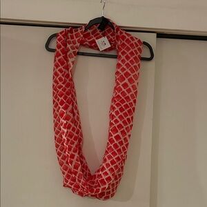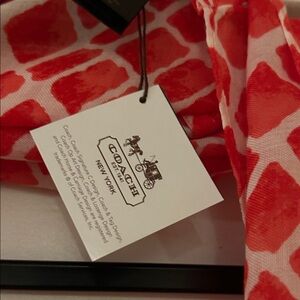 Stylish Coach infinity scarf with a vibrant red and white pattern. Perfect for any occasion.NWT