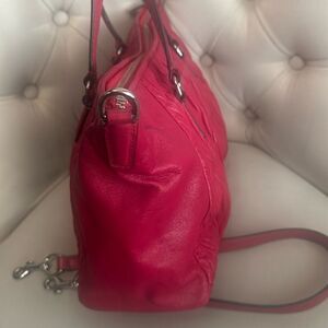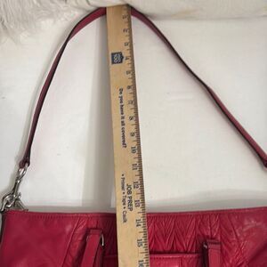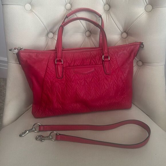 Stylish and versatile Coach red quilted leather tote bag. Perfect for any occasion.