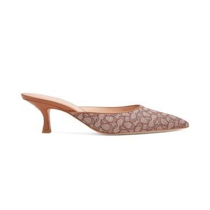 Chic brown mules with signature pattern. Ideal for stylish outings. See 4th photograph for details.