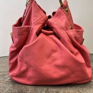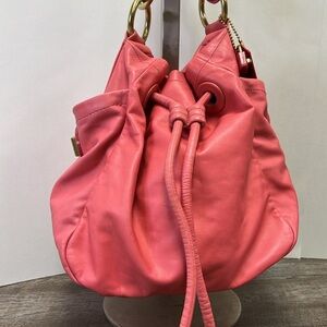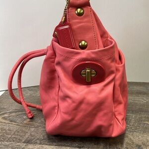 This classic Coach Resort tote is in PRISTINE condition (gentle use). It is made from luxe pink leather elegantly topped with gold-tone hardware.