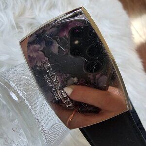 Coach reversible belt • black leather Coach belt • signature print Coach belt • size 34–38 men’s belt • silver buckle belt • adjustable designer belt • two-sided Coach belt • classic & logo belt • luxury men’s accessory • Coach leather belt for men