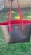 Stylish Coach tote with signature pattern. Rich brown with bold red accents. Reversible to a gorgeous deep red purse!!! Perfect large bag for the airport, and the reversible feature makes it perfect for travel as you may need another purse/tote. 2-in-1!