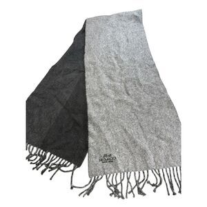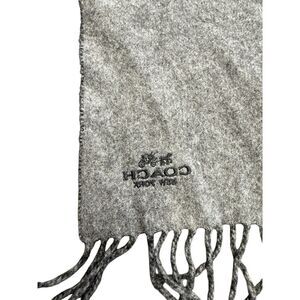 Coach Reversible Gray Charcoal Fringe Scarf Soft Wool Cashmere Feel Logo