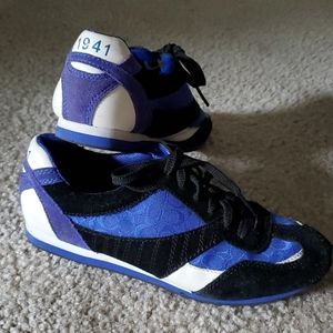 Cobalt blue and black sneaker, gently used but no scratch or major stain. See pictures.