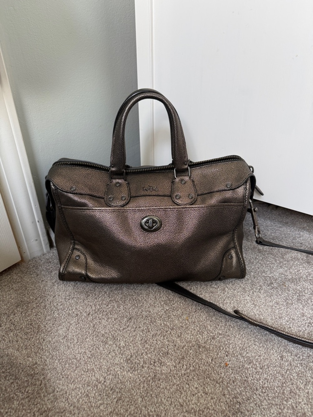 Coach Rhyder Metallic gunmetal bag. Used but in great condition. Can’t find any callouts. See pictures for condition.