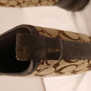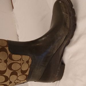 These boots are used and have scuffs all over. Rubber has no holes or rips. They were well lived in but still have life left. The left boot has a small tear the size of a finger nail.