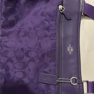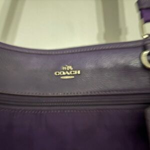 Chic Coach shoulder bag in deep purple. Sleek design with premium leather. Ideal for daily use.