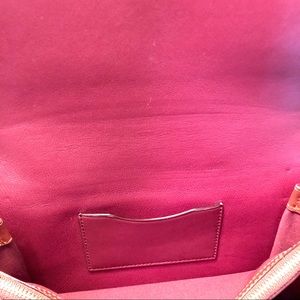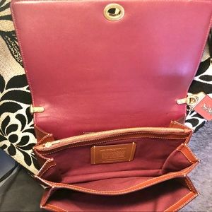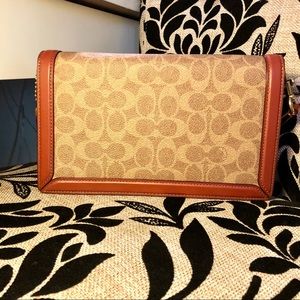 Coach Riley in signature canvas with 1941 saddle refined calf leather. Inside zip and slip pockets with turnlock closure and fabric lining. 9 3/4 “ (L) x 6” (H) x 1 3/4 “ (W).