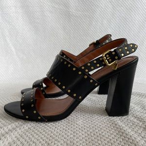 Gently loved black leather and brass detail sandals. In great condition with normal wear around toes - please see photos. Includes original box.