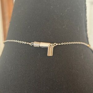 This feminine, mixed-metal charm necklace features a trio of rings with faux pearls, golden studs, daisy rivets and COACH’s signature Tea Rose motif.