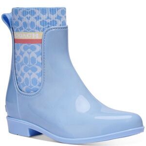 Chelsea boot style gets a weather-ready update in the fresh pull-on design of the Rivington rain boots by COACH.