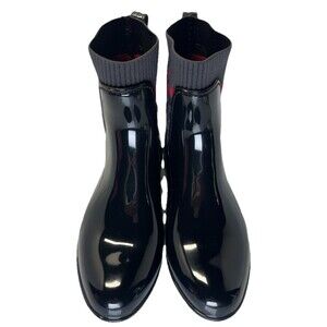 Coach Rivington Signature Logo Knit Black Pull-On Ankle Rain Boots Size 6 Bootie