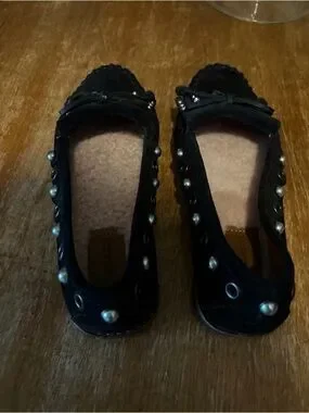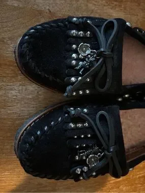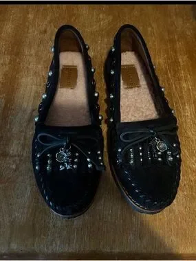 Like new, tried on but never worn outside. Women’s Size 5.5 Black Suede Roccasin (Moccasin)