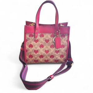 Coach Rogue 25 Tote Heart Print Signature Canvas Red Leather Trim