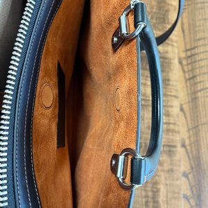 Hi Angela, the bag is literally new. No rips of flaws. I'll send you pictures to your e-mail. You can see the paper covering the zippers are still on and the original coach receipt is in one of the pictures.