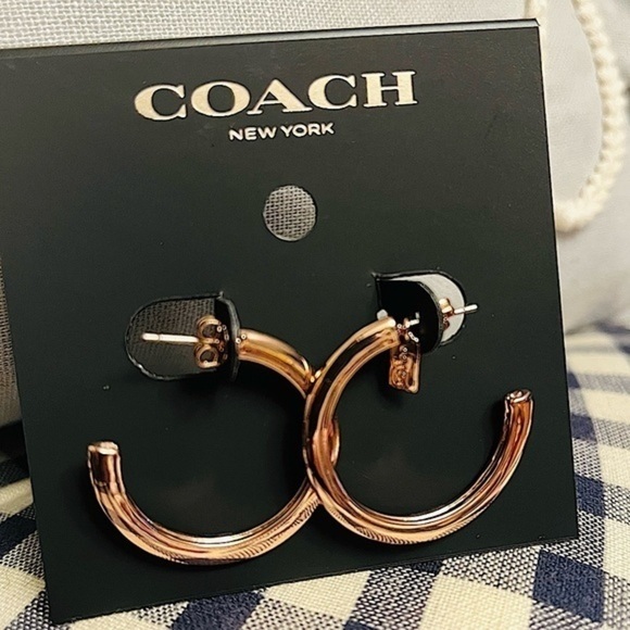 #coach #coachearrings #choopearrings #rosegoldearrings #logojewelry #designerjewelry #minimaliststyle #everydayglam #statementhoops #giftidea #nwt #newwithtags #luxuryaccessories