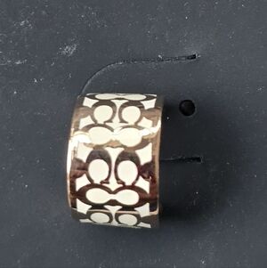 Chic Coach earrings with a rose gold and cream pattern. Ideal for elevating any look.