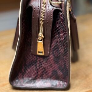 Rogue Regenerative Leather & Gorgeous Purple Snakeskin Detail. Detachable long strap for shoulder or crossbody wear included. Dust bag not included.