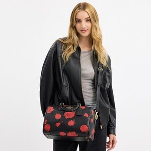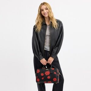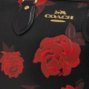 Coach Rowan Large Satchel Bag With Red Rose Floral Print NEW with tags